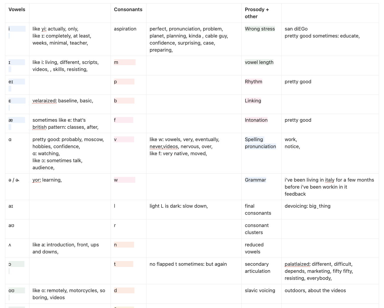 Here are typical language-specific curricula I’ve used over the past near-decade of teaching, testing, and refining. While Slavic speakers & Chinese speakers are my biggest demographics, my background as a linguist and language learner helps me modify and pick the right lessons to help you efficiently and effectively reach your accent goals.